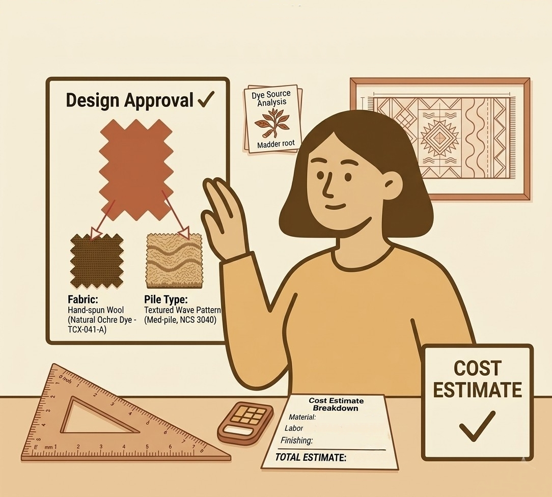 At RugDirect, nothing goes into production without your complete satisfaction. Once the design and materials are locked in, we present you with a detailed visual mock-up along with a clear and transparent cost estimate — no surprises, no hidden fees. Only after your full approval do we move forward, ensuring you feel confident every step of the way.