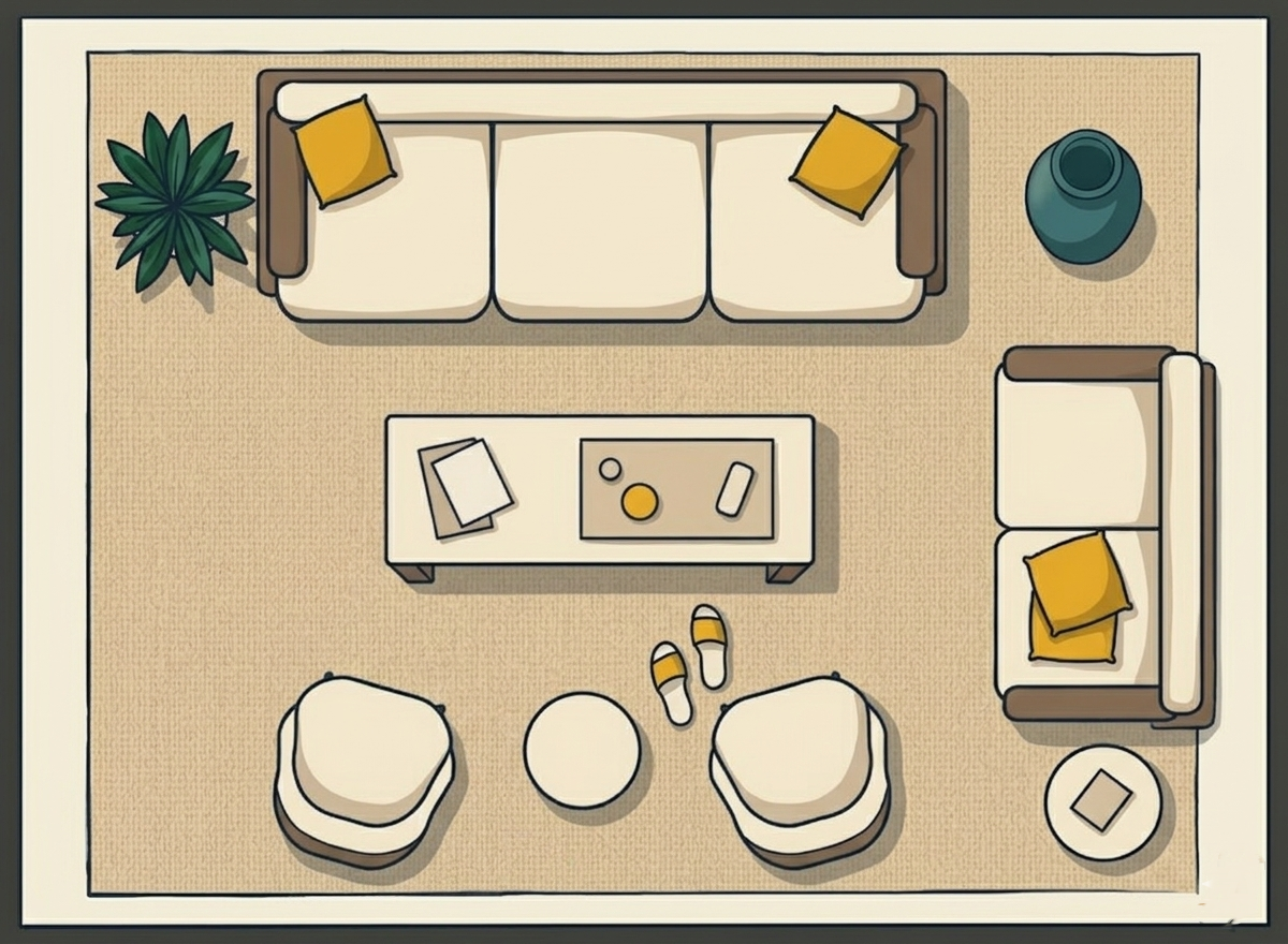 • Depending on your room layout, you can place furniture fully or partially on the rug — both work beautifully when done right.